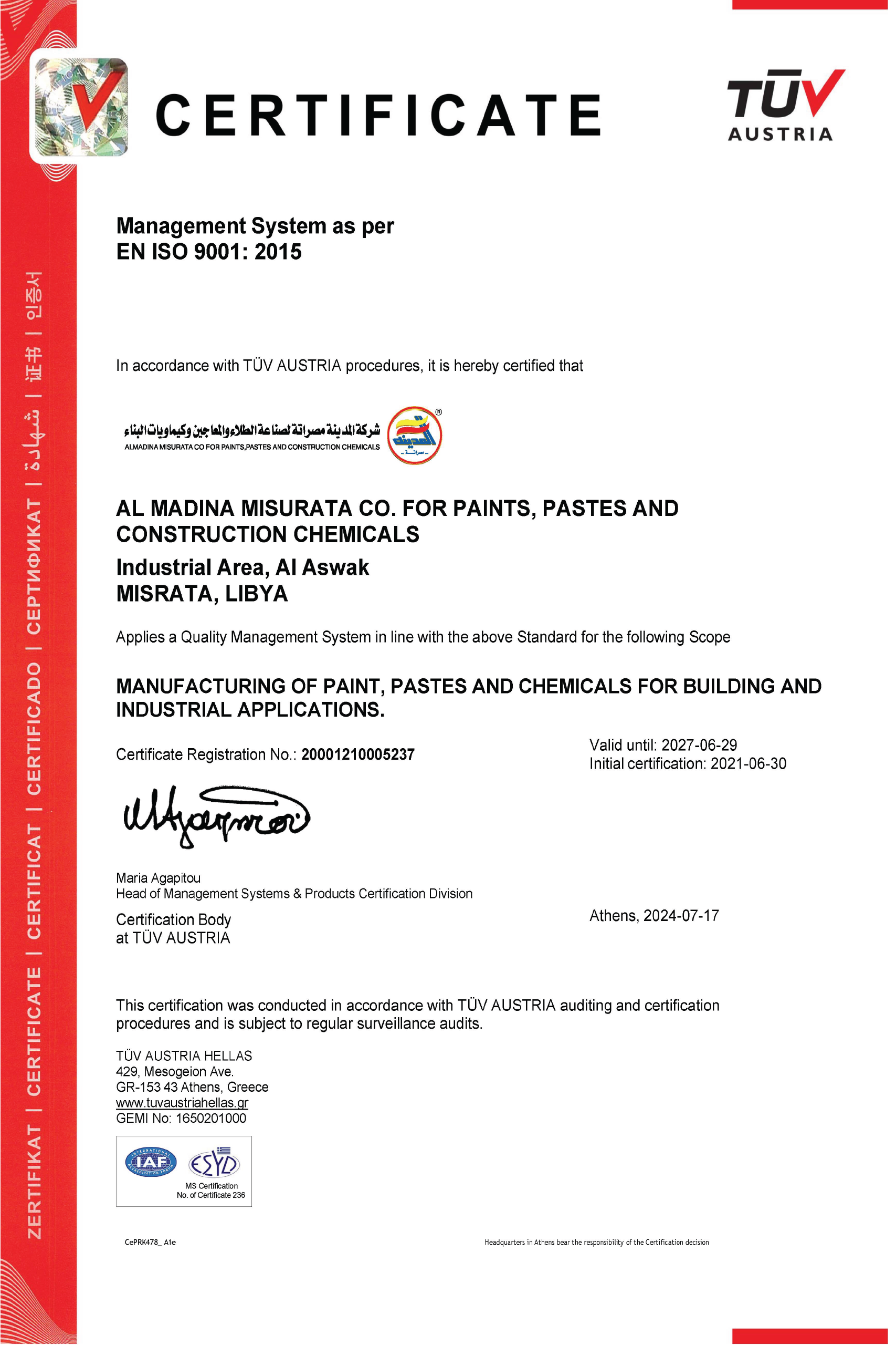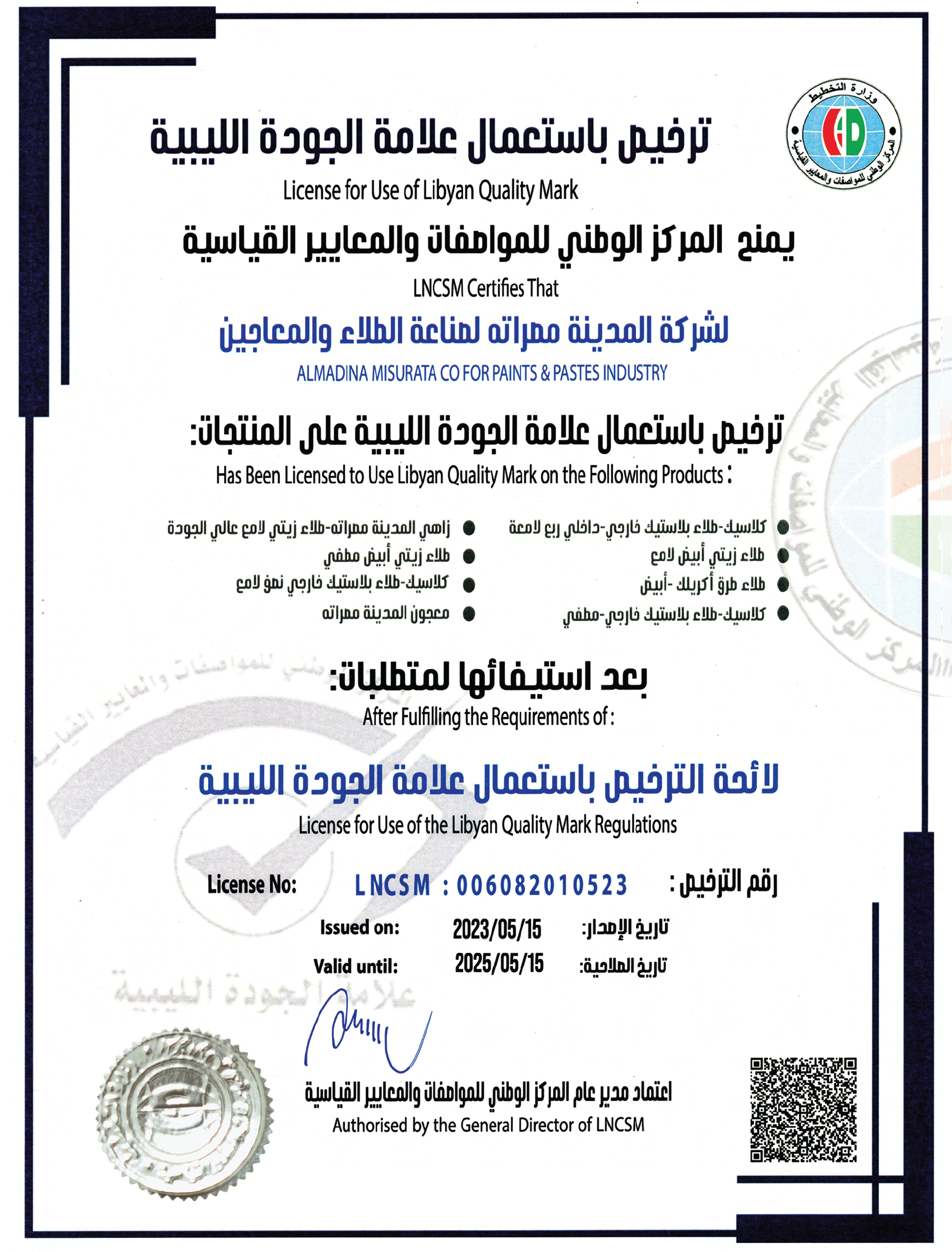 one of the first Libyan companies working in the field of paints that has obtained the Libyan quality mark, and many international ISO certifications.