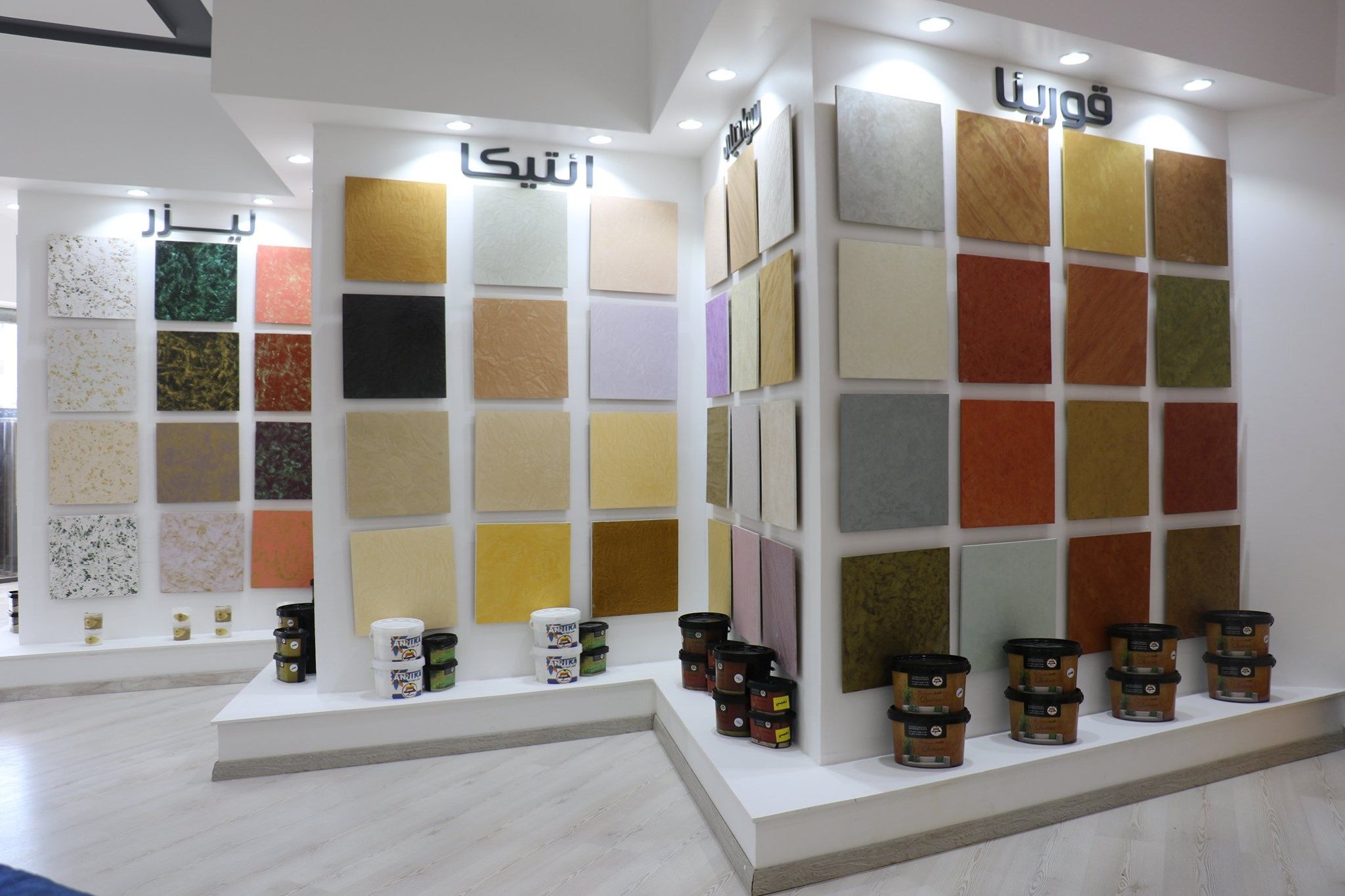 Vous pouvez visiter l’exposition et avoir un aperçu des derniers systèmes de couleurs (8000 couleurs) – les derniers assortiments de peintures décoratives – produits isolants – produits époxy.